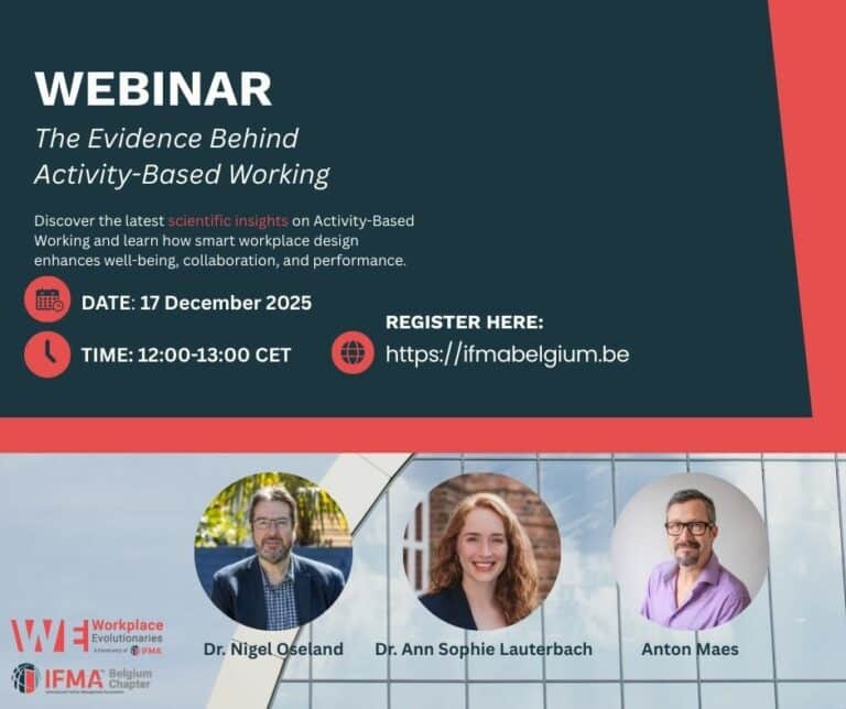 - Be part of the IFMA Belgium community and participate to inspiring events at inspiring locations.